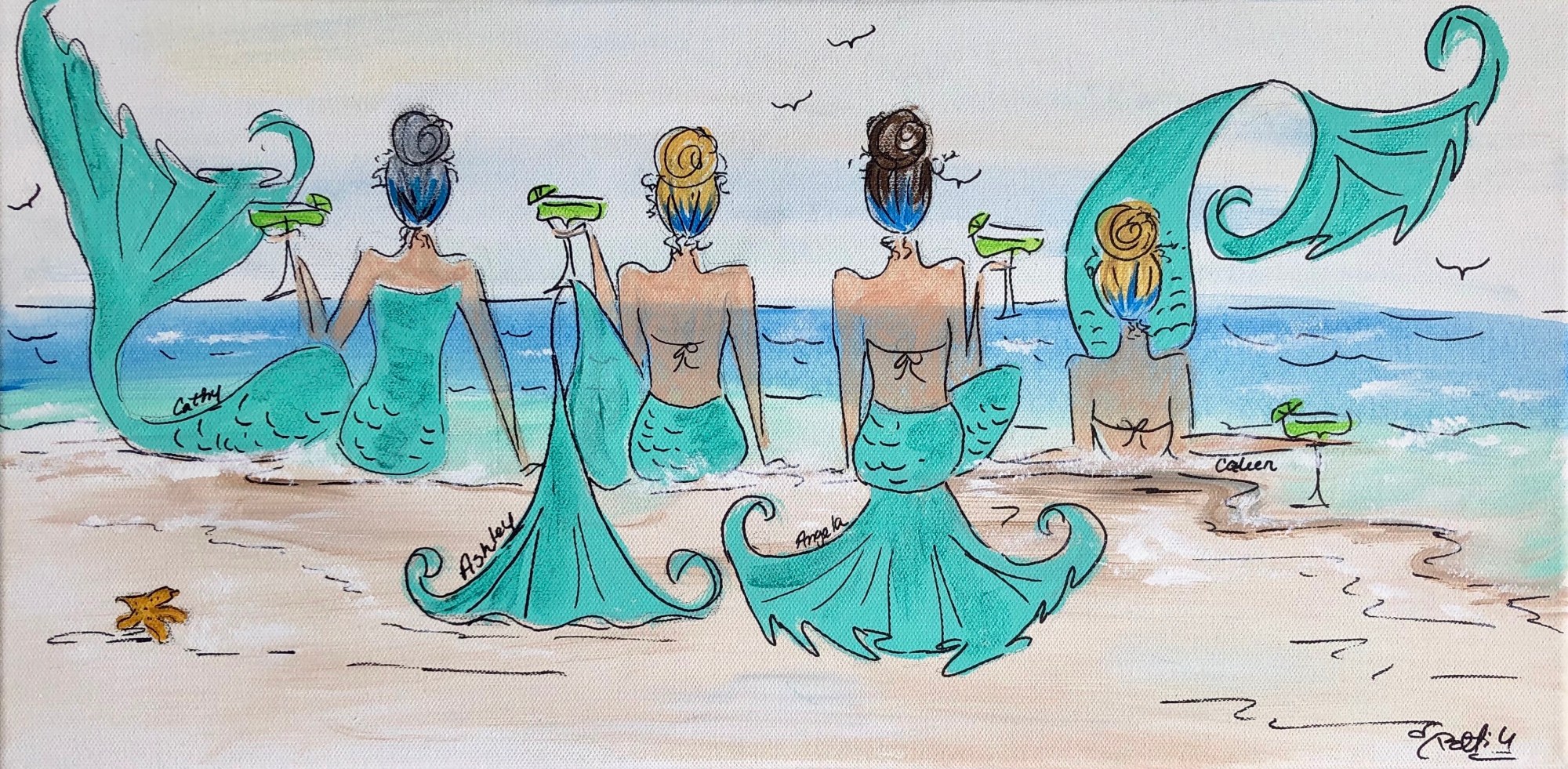 Living at the beach and painting full time has become a dream come true for me. Can you see yourself in a sketch? Whether that’s with a girlfriend group or a wedding party, it’s up to you. I have fun and you have a memory. Take a look around and see if anything catches your eye!